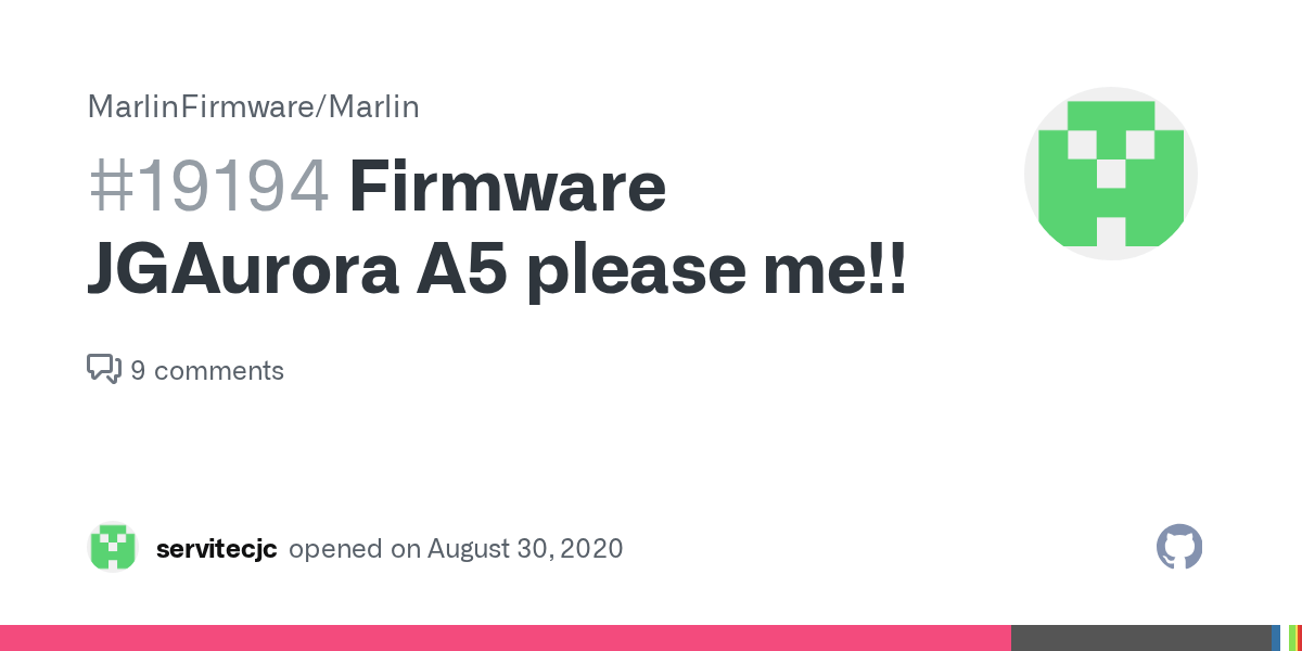This firmware was prepared from scratch using the latest marlin base firmware, as jgaurora disrespect the gpl by refusing to provide their modified marlin firmware!. The current firmware team includes: 10.04.2021 · development is happening on github here (make sure you select the a5 branch and not the 1.1.x branch!!) if you'd like to get involved or contribute. 09.01.2018 · this firmware was prepared from scratch using the latest marlin base firmware, as jgaurora disrespect the gpl by refusing to provide their modified marlin firmware! This firmware was prepared from scratch using the latest marlin base firmware, as jgaurora disrespect the gpl by refusing to provide their modified marlin firmware!. Hier können sie die aktuelle firmware für unseren jg performance kit herunterladen. Benutzen sie diese firmware wenn ihr a5 mit tmc210 modulen auf x und y achse ausgestattet ist.